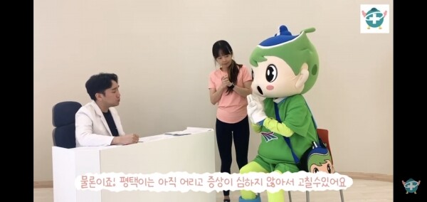 ‘바른 자세 중요성 알기’는 평소 자세가 바르지 않던 평택이가 목 통증으로 병원을 방문해 의사선생님으로부터 척추 건강을 지키는 자세 교육을 받게 되면서 올바른 자세로 개선한다는 내용을 재미있는 연극으로 담았으며 송탄보건소 유튜브채널에 업로드해 호응을 얻고 있다.