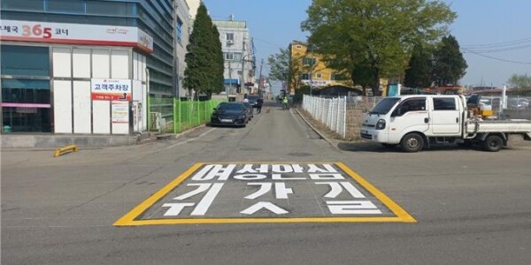 특히 여성안심귀갓길 구간을 기존구간보다 200m 늘려 여성안심귀갓길에 각 구간별 시작부터 끝 지점까지 50~70m 간격으로 형광도료를 활용한 노면표지를 8개소 설치해 첫 번째 구간과 마지막 구간까지 시인성을 극대화 한 것이 돋보이며 여성에게는 심리적 안정감과 범죄자에게는 심리적 위축감을 주어 여성범죄예방에 큰 도움을 줄 것으로 기대된다.