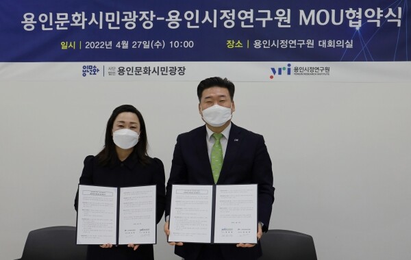 [뉴스써치] 용인시정연구원은 4월 27일 용인문화시민광장과 용인특례시 문화예술 활성화를 위한 업무협약을 체결했다.