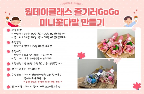 구리시청소년수련관, 5월 원데이클래스‘미니꽃다발 만들기’