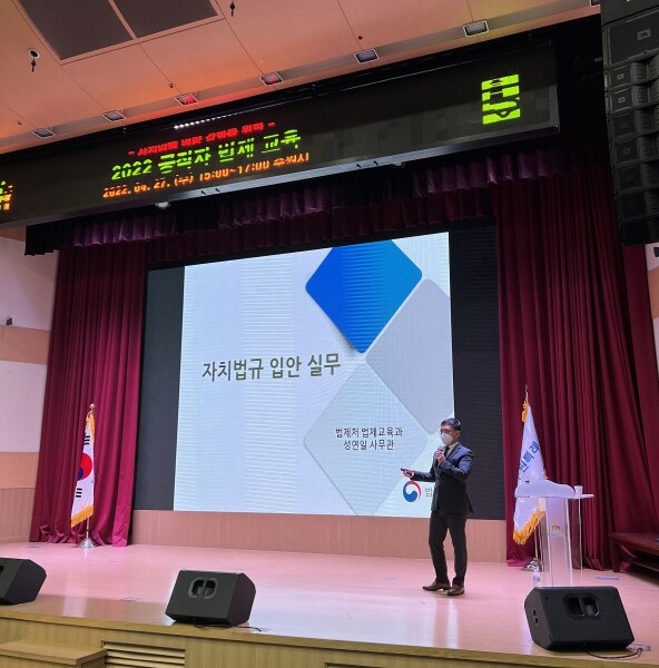 성연일 사무관은 교육에서 자치법규 입안 실무 적극행정 법제 사례 연구 적극행정과 적극행정 법제 적극행정을 위한 법령 입안·정비·해석 등에 대해 설명했다.