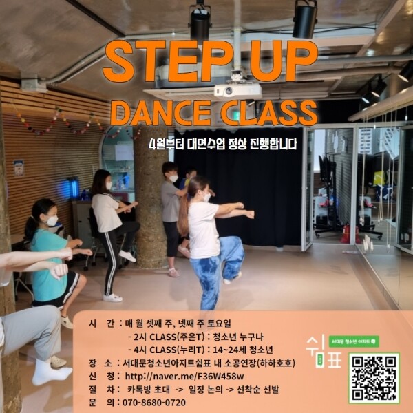 매월 셋째 주, 넷째 주 토요일 오후 2시와 4시에는 STEP UP 댄스클래스가 진행된다.
