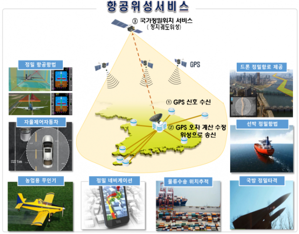 한국형 항공위성서비스는 국제민간항공기구에 세계 7번째로 공식 등재된 우리나라의 위성항법보정시스템으로써, 국토교통부는 항공기에 정밀한 위치정보를 제공해 항공교통량 증대 및 항공안전을 도모하기 위한‘한국형 항공위성 서비스’구축 사업을 차질 없이 추진 중에 있다.