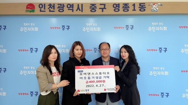 영종 하늘도시에 위치한 모어댄스스튜디오는 수강생들의 바자회를 통해 마련된 수익금을 하늘도시에 거주하는 저소득 취약계층 아동들에게 도움을 주고자 성금을 기탁했다.