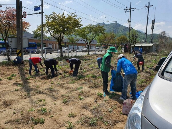 뜨거운 봄 햇살 속에서도 활동에 참여한 주민자치회 위원 및 고문 10여명은 행복텃밭 주변을 정리하고 고랑 작업을 끝내 모종을 심기 위한 준비로 구슬땀을 흘렸다.
