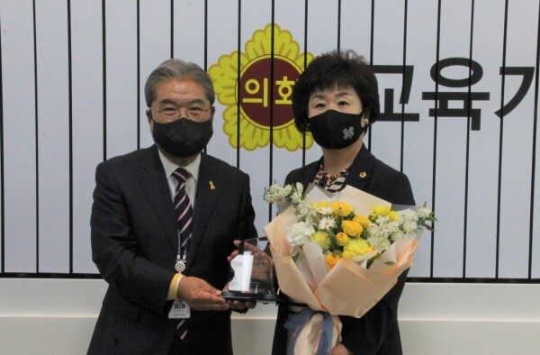 이날 감사패는 모든 학생들이 행복한 교육을 실현하기 위한 황진희 의원의 관심과 헌신에 대한 깊은 감사의 뜻을 전달하기 마련된 것으로 전달식에는 이재정 경기도교육감을 비롯한 관계 공무원들이 참석했다.
