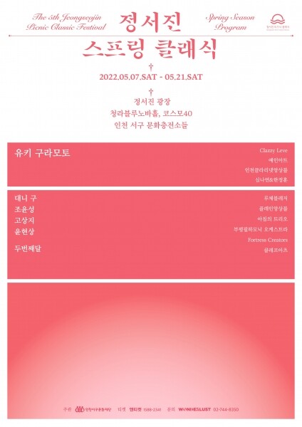 재단은 다음 달 21일까지 정서진 광장, 청라블루노바홀 공연장, 코스모 40과 서구 문화충전소 곳곳에서 국내외 최고 클래식 연주자들의 화려한 무대를 준비했다.
