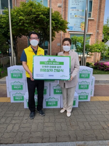 이날 전달받은 희망상자는 상자당 12만원 상당의 식료품, 상비약, 영양제, 화장품 등이 들어 있으며 한부모가구, 다자녀가구 등 관내 취약계층 38가구에 전달될 예정이다.