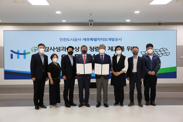 윤병석 iH 상임감사는 “iH와 제주특별자치도개발공사의 감사 노하우와 전문성을 바탕으로 감사업무의 교류·협력을 강화해 양 기관의 청렴도 및 감사성과를 개선하길 바라며 나아가 인천시민과 제주도민의 신뢰와 사랑을 받는 공기업으로 우뚝 서도록 함께 노력해나가겠다”고 말했다.