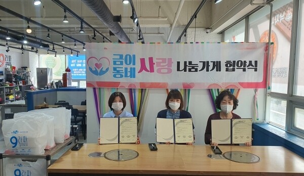 한편 협약 체결 후 정기후원 3개월 도래 시 금이동네 사랑나눔가게 10호점으로 선정된다.