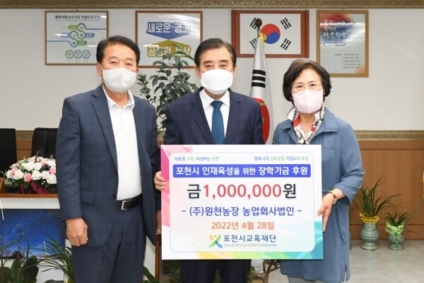 박윤국 이사장은 “청정 축산업 영위를 통한 지역사회의 기여에 대단히 감사드린다 전달해주신 장학금은 인재 양성을 위해 소중히 사용해 포천시가 미래 세대에 꿈을 키우는 교육의 중심도시가 되도록 최선을 다하겠다”고 전했다.