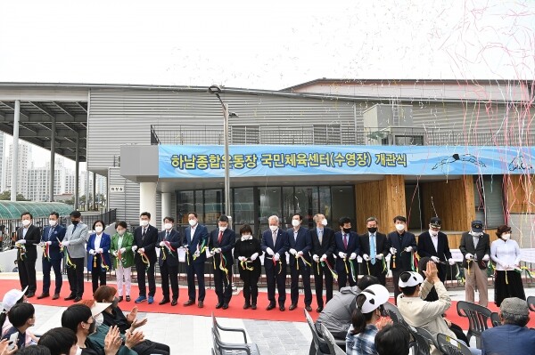 하남종합운동장 내에 있는 하남국민체육센터 수영장은 2020년 증축공사에 들어가 2년에 걸친 공사 끝에 이날 준공식을 가졌다.