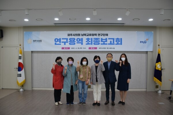 이번 최종보고회에는 남북교류협력 연구단체 박은주 대표의원을 비롯해 한양수 의장, 윤희정 의원 등 연구단체 소속 의원과 파주시 평화협력과장과 남북협력팀장이 참석한 가운데 진행됐다.