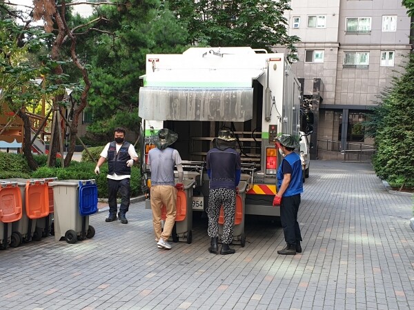 구는 전용차량에 부착된 세척펌프를 사용해 수거용기에 고압의 온수를 분사해 세균을 제거하고 세척 용액으로 세척한 후, 탈취제 용액을 분사해 냄새를 제거하며 작업을 마무리 한다.
