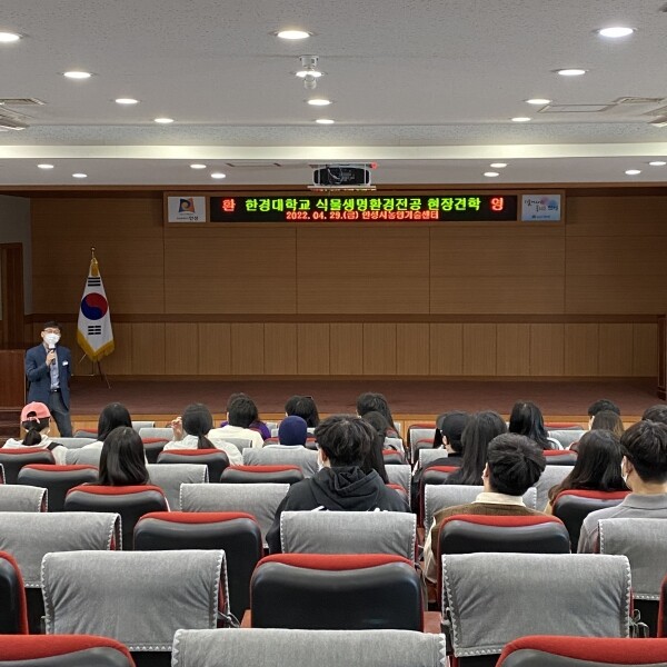 이번 견학은 30명의 식물생명환경 전공 학부생들이 참여했으며 농업기술센터 서동남 지도기획팀장의 농업기술센터 안내 및 진로특강, 이선행, 구혜모 지도사의 선배와의 대화 및 농업안전성분석실 및 미생물배양실 견학 등을 진행했다.