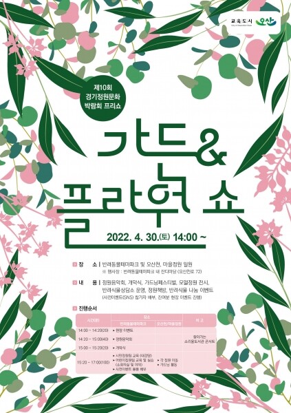 오산시 공원녹지과 관계자는 ‘2022 제10회 경기정원문화 박람회’의 미리보기 행사인 “오산 가든 앤 플라워 쇼”를 통해 보다 많은 사람들이 정원문화의 가치를 알고 함께 즐겨나가기를 소망한다고 말했다.