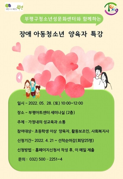 교육은 선착순으로 접수하며 신청 방법은 부평구 청소년성문화센터 홈페이지에서 확인할 수 있다.