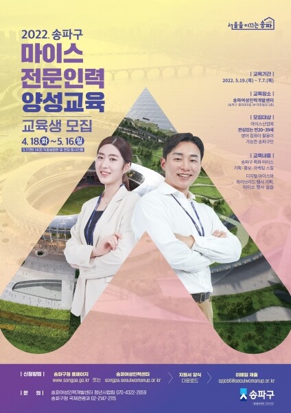 참여를 희망하는 사람은 구 홈페이지 또는 송파여성인력개발센터에서 신청서류를 다운받아 5월 16일 오후 3시까지 이메일로 제출하면 된다.