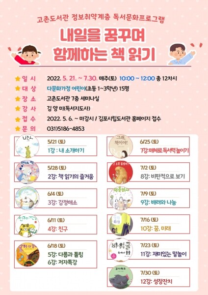 이번 프로그램은 경기도가 주최하고 한국독서지도연구회협동조합이 주관하는 정보취약계층 독서문화프로그램으로 상대적으로 독서문화향유 기회가 부족한 다문화 가정 초등학교 1~3학년 학생 15명을 대상으로 진행할 예정이다.