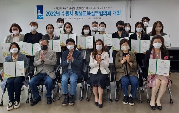 수원시는 4월 29일 권선구 경기상상캠퍼스에서 ‘수원시 평생교육실무협의회 위촉식’을 열고 신규 위원들에게 위촉장을 수여했다.