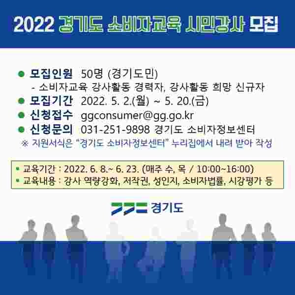 ▲ 경기도, 2022 소비자교육 시민강사 과정 참가자 모집