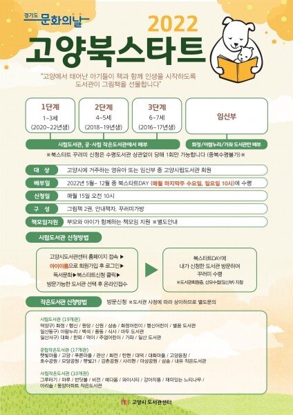 대상자는 매월 15일 고양시도서관센터 홈페이지에서 신청 후 북스타트데이 인 매월 마지막주 수요일 또는 일요일에 신청도서관을 방문하면 꾸러미를 받을 수 있다.