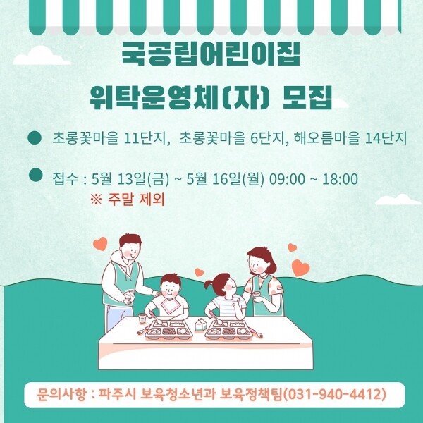 ▲ 파주시, 국공립어린이집 3개소 위탁운영체 모집