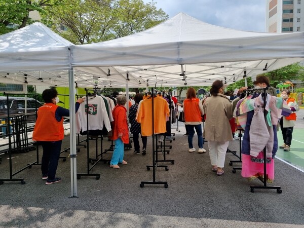 이번 행사는 금곡동 금강아파트, 신성푸른솔아파트, GS금곡아파트 주민들을 대상으로 진행됐으며 재사용이 가능한 의류를 전시해 무료로 나누고 접수된 의류 3kg당 종량제 봉투 1매를 지급하는 방식으로 운영됐다.