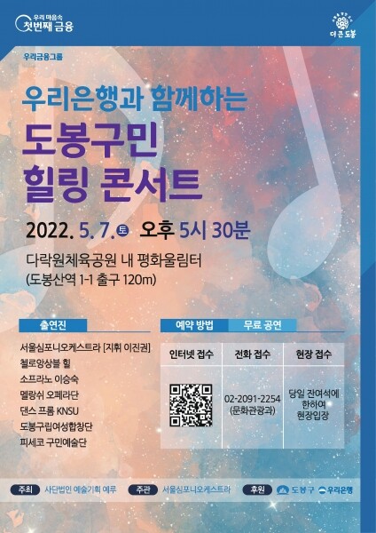 도봉구민 힐링 콘서트와 함께 즐겁고 행복한 시간 되시기를 바라며 앞으로 봄꽃처럼 만개할 도봉의 문화예술 프로그램과 함께 구민 여러분의 일상이 다시금 풍요로워지길 바란다”고 말했다.