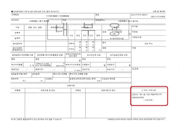 변경된 일반건축물대장에는 개별주택가격이 건축물대장 '그 밖의 기재사항' 항목에 표기된다.