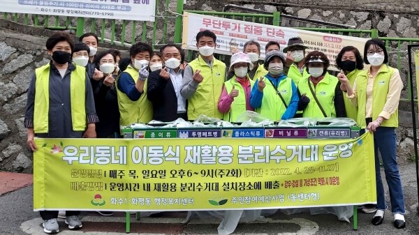 화수1·화평동 관내 7개소에 매주 목, 일요일 오후 6시부터 9시까지 이동식 분리수거대를 설치해 운영하며 운영시간 외에는 분리수거대를 철수한다.
