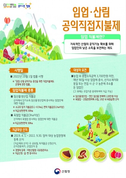 임업직불제 제도와 임업경영체 등록 관련 자세한 내용은 평일 오전 9시부터 오후 6시까지 산림청 대표번호로 문의하면 된다.