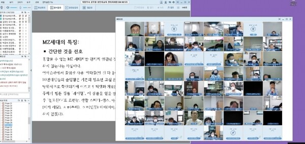 온라인 pc 영상회의를 활용해 비대면으로 진행된 이번 교육은 먼저 젠더심리연구소 김정인 소장의 강의로 ‘MZ세대의 성인지 감수성’을 주제로 해 MZ세대의 등장과 조직문화 변화 흐름 및 젠더감수성 커뮤니케이션 가이드를 논의했다.
