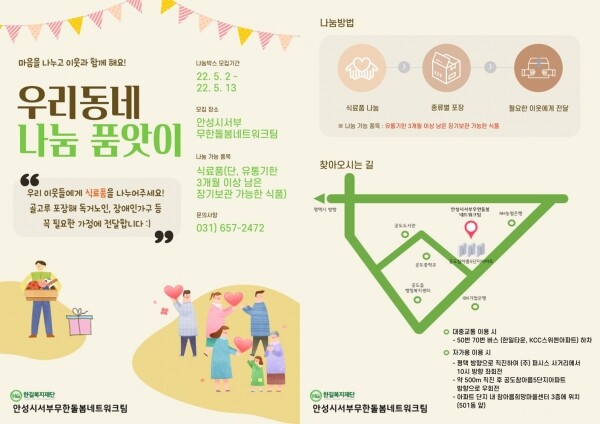유성아 팀장은 “나눔에 동참하고 싶은 분은 주저하지 말고 함께 해주시길 바란다”며 “품앗이처럼 소유에서 공유로 전환되는 계기가 되어 자발적인 나눔을 통해 마을 공동체 의식이 증대되고 주민들의 참여가 주체가 되는 모델로 발전되길 바란다”고 전했다.