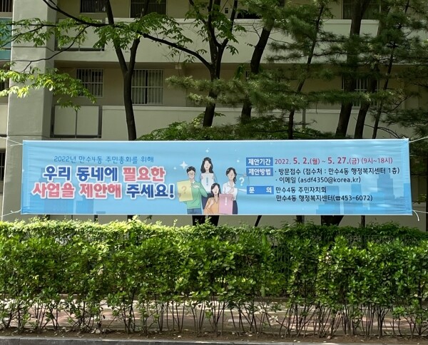 윤영희 만수4동장은 “주민의 욕구가 반영될 수 있도록 동에서도 최선을 다해 지원하겠다”고 전했다.
