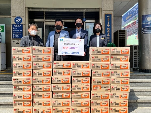 주식회사 모이세는 사회적기업으로 지난해 겨울에도 지역 내 저소득층을 위한 라면 50박스를 기탁한 바 있다.