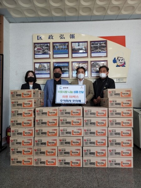 천승화 모이세 대표는 “5월 가정의 달을 맞아 직원 및 회원들이 사회적 책임을 공감하며 십시일반 모아 라면을 마련했다”며 “소외된 이웃들에게도 행복한 5월이 되길 바란다”고 말했다.