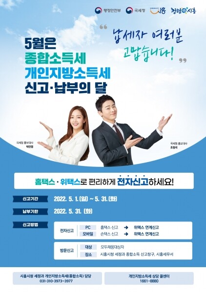 5월 종합소득세·개인지방소득세 확정신고 관련 문의사항은 시흥시청 세정과 지방소득세2팀으로 하면 된다.
