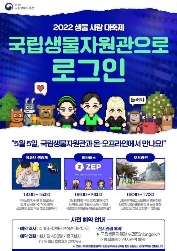 이와 함께 국립생물자원관은 ‘네이버 제페토’에서 연구실, 전시실 등을 ‘확장 가상세계’로 구현해 5월 5일 오전 9시부터 자정까지 공개한다.