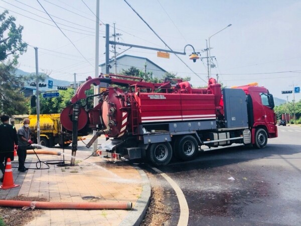시는 매년 6개월 간격으로 우기 이전에 1회, 동절기 이전에 1회씩 진공 흡입 준설차를 사용해 동두천산업단지 피혁폐수처리장을 기점으로 하수관로 준설공사를 실시하고 있다.