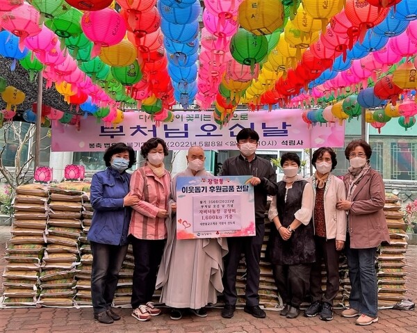 이원진 장암동장은 “부처님 오신 날을 맞이해 관내 취약계층을 위한 기부에 힘써주신 석림사 신도분들께 감사드린다”며 “한뜻으로 모아주신 따뜻한 마음을 어려운 이웃분들께 소중히 전달하겠다”고 감사의 마음을 전했다.