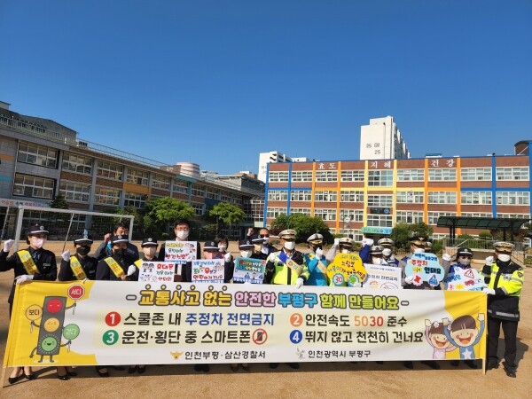캠페인에는 부평구와 인천부평모범운전자회, 인천부평녹색어머니연합회 등 교통관련 단체 및 인천부평경찰서 학교 관계자 등이 참여해 올바른 횡단보도 보행 습관, 안전속도 5030 준수 등의 안전수칙을 홍보했다.