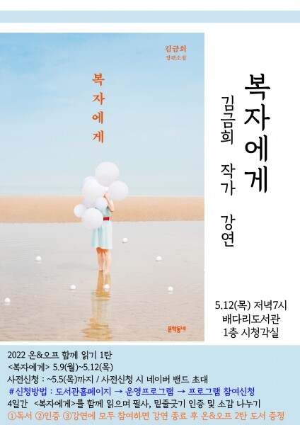 강연 전 며칠 동안은 네이버밴드를 통해 ‘복자에게’ 온라인 함께 읽기도 진행된다.
