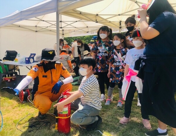 119안전체험장 운영은 소방안전 체험교육 프로그램 운영 주택용 소방시설 설치 홍보 물품 등 배부 어린이 방화복 착용 및 포토존 운영 소방타투 체험존 운영 등이다.