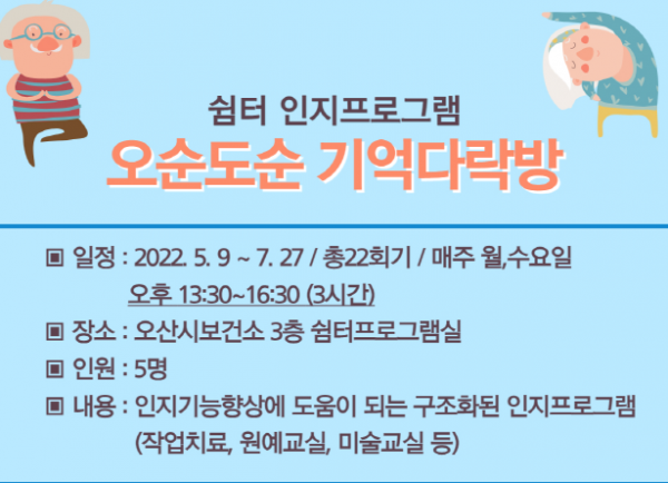 곽상욱 오산시장은“대면 프로그램을 통해 치매 환자의 증상 악화를 방지하고 치매환자 가족의 부양 스트레스를 최소화하기 위해 노력하겠다”고 전했다.