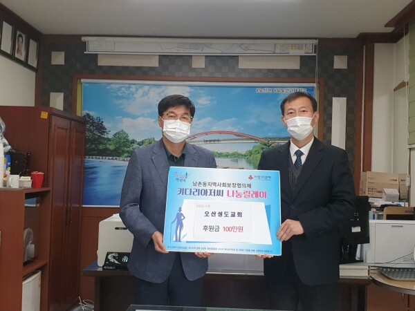 이날 받은 후원금은 오산성도교회 교인들의 십시일반으로 모은 헌금으로 남촌동 관내의 복지사업을 위해 쓰여질 예정이다.