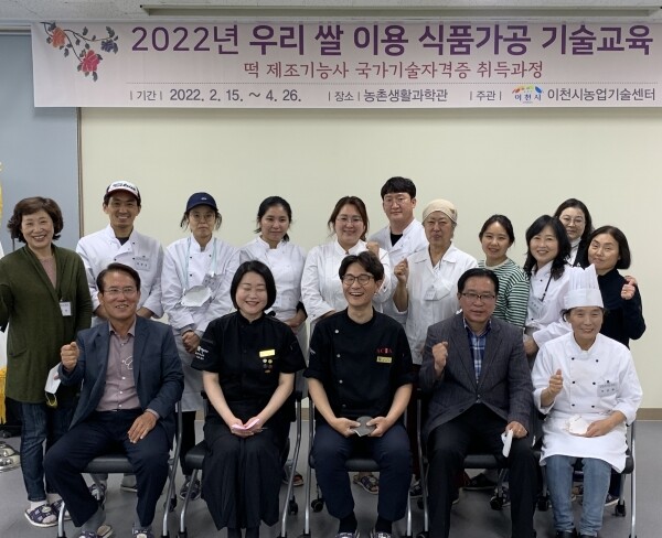 우리 쌀 이용 식품가공기술 교육은 이천시 지역 쌀을 이용한 떡 제조 및 먹거리 상품 개발을 위한 전문 인력 양성과 ‘떡 제조기능사’ 국가 자격증 취득에 중점을 두고 진행됐으며 2월 15일 개강 이후 주 1회 교육 과정을 충실히 이수한 11명의 교육생들에게 수료증를 수여했다.