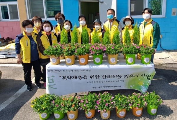 ‘취약계층을 위한 반려식물 키우기’ 사업은 율면 지역사회보장협의체의 2022년 추진 특화사업 중 하나로 소외 이웃에 대한 지속적인 관심을 통해 복지사각지대 대상자를 발굴하고 대상자가 반려식물 키우기를 통해 정서적 안정감을 회복하고 고독감을 해소시키는 것을 목적으로 추진하는 사업이다.