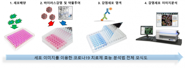 효능 분석은 먹는 치료제를 대상으로 국내 유행 코로나19 오미크론 세부계통 바이러스에 대한 항바이러스 효능을 세포 수준에서 바이러스 증식이 억제되는 약물 농도 측정을 통해 평가했다.