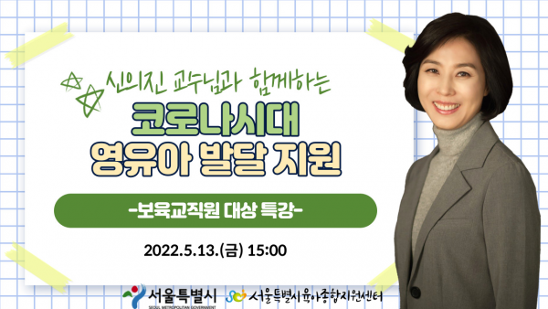 ? 특강은 서울시육아종합지원센터 강당에서 영유아 부모를 대상으로 5월 10일 오전 10시 30분, 보육교직원을 대상으로 5월 13일 오후 3시에 각 1시간 동안 진행되며 유튜브로 동시 생중계된다.